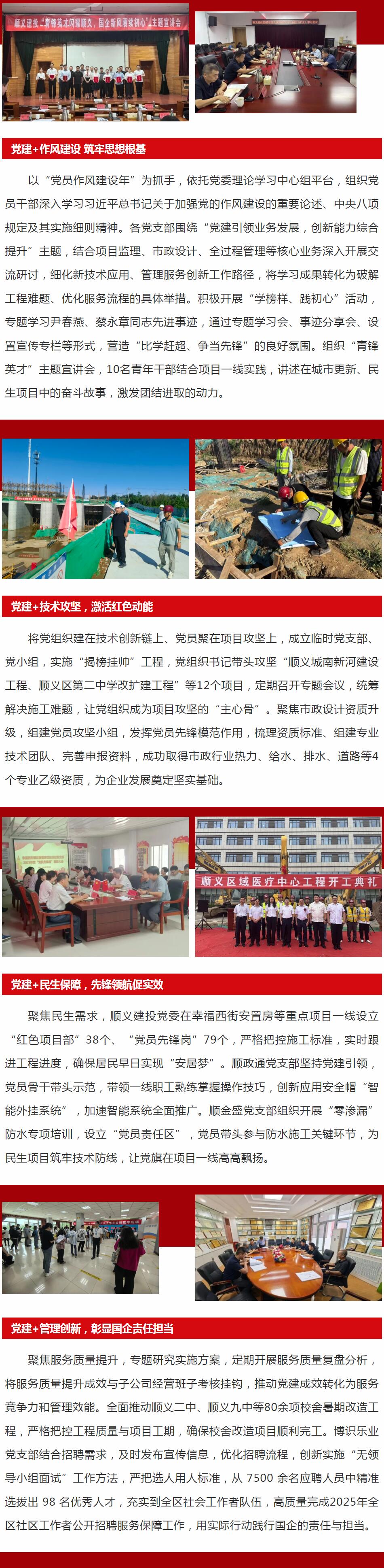 順義建投黨委堅持黨建引領(lǐng),以 “紅色引擎” 凝聚發(fā)展合力,在重大項目攻堅、民生工程推進、服務(wù)質(zhì)量提升等領(lǐng)域主動作為,不斷激發(fā)國企創(chuàng)新發(fā)展活力,全力打造特色黨建品牌,為區(qū)域發(fā)展貢獻順義建投力量。